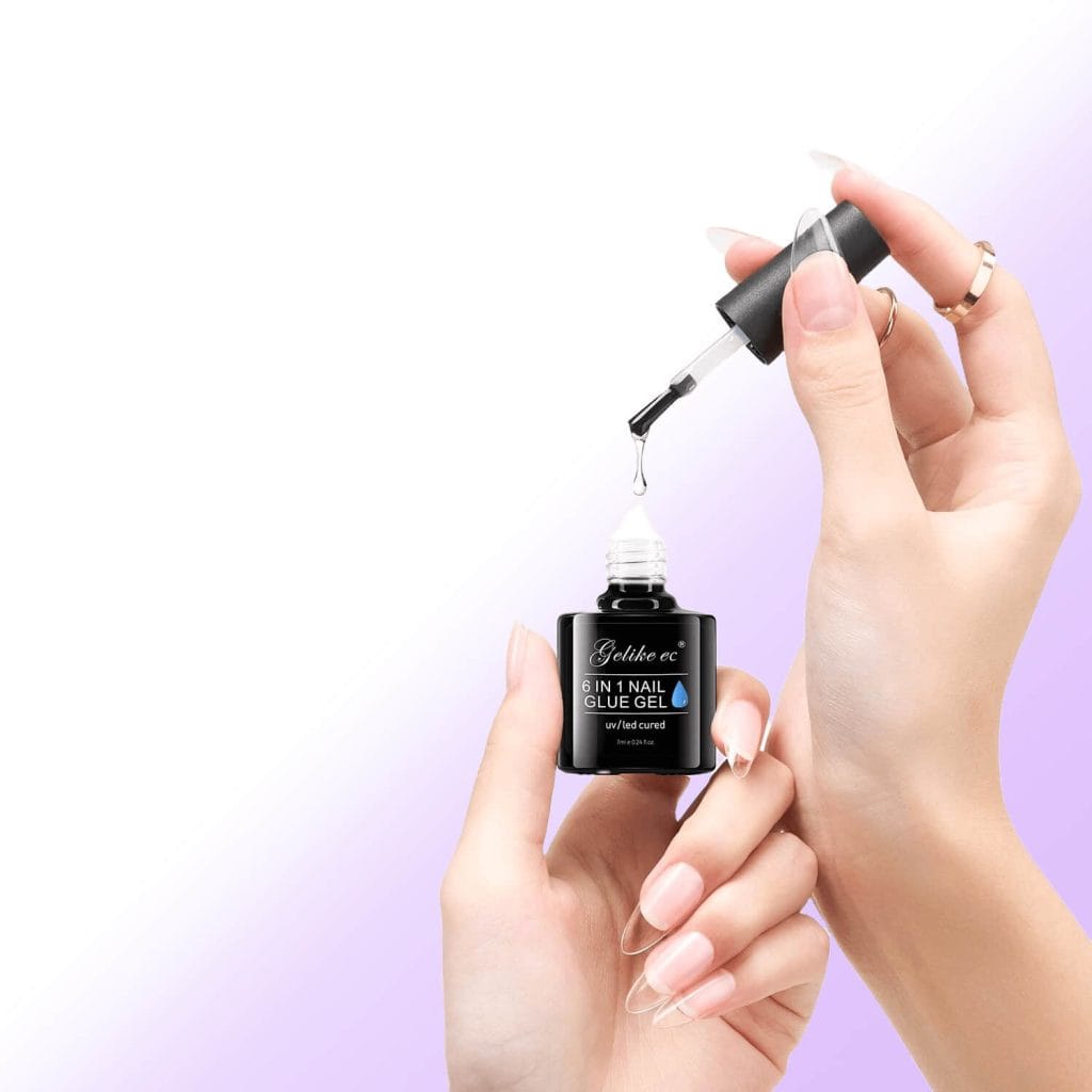 Transform your at-home manicure with our multipurpose nail glue gel that combines six essential products in one formula. This precision adhesive delivers a bubble-free application and creates durable bonds that stay flawless for 28 days. Each 6-in-1 gel bottle replaces your base coat, builder, strengthener, extension gel and blooming gel